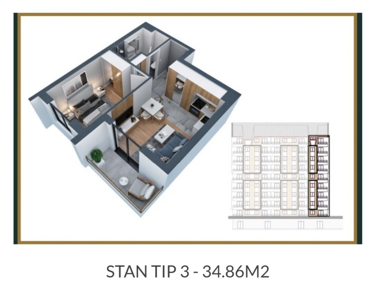 Jednosoban Apartnam na prodaju.