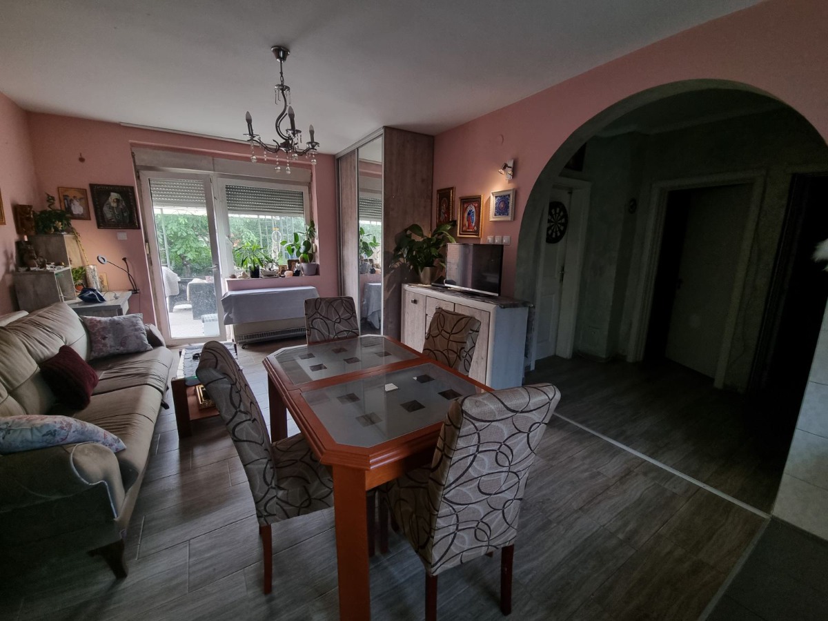 U prizemlju su dupli zidovi izolacija je odlicna.Hodnik sa kupatilom i 2 spavace sobe i kuhinja sa dnevnom sobom.U prizemlju kuce u zasebnom delu je jos jedna prostorija /lokal